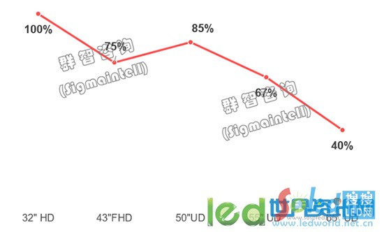 2020年LCD TV面板主流尺寸價(jià)格漲幅(單位:%)