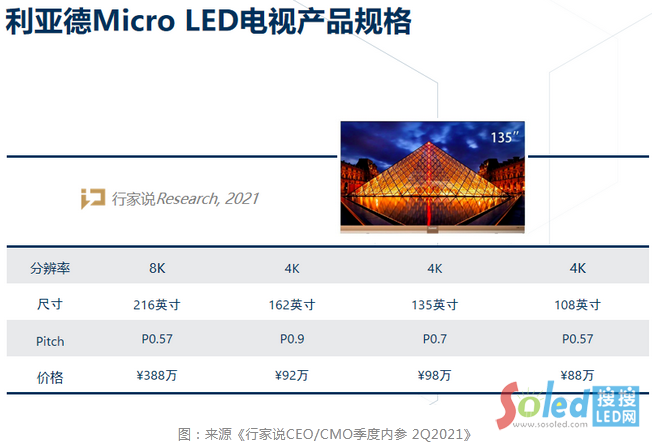此次利亞德發(fā)布的Micro LED全系家用大電視,尺寸覆蓋108英寸、135英寸、162英寸以及216英寸,像素間距涉及0.57mm-0.9mm, 價格在88萬-388萬之間,這意味著微間距LED顯示(Mini/Micro LED)真正突破了室內(nèi)更多應(yīng)用領(lǐng)域門檻,開始走入電影院、家庭,占領(lǐng)高端民用市場,利亞德將有機會再次領(lǐng)跑LED顯示新十年賽道。
