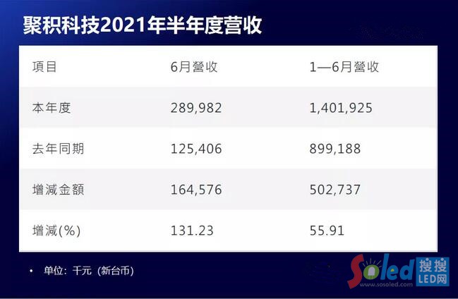 據(jù)報道,聚積6月營收2.9億元(折合人民幣6734萬元),月增6%,年增131.23%,整體第2季營收達8.26億元(折合人民幣1.91億元),創(chuàng)下歷史單季次高水準,1-6月營收14.02億元(折合人民幣3.24億元),較去年同期上漲55.91%。