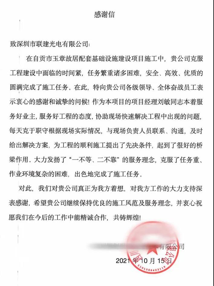 既是聯(lián)建光電始終以客戶利益為中心的力證