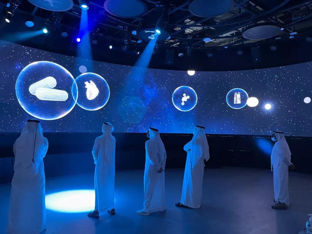 來到阿聯(lián)國家石油公司展館,更能享受創(chuàng)新和完全沉浸式的文化體驗(yàn)。整片場館以“再想象能源”為主題,透過近200㎡LED大屏,采用可持續(xù)驅(qū)動的元素,讓游客用感官體驗(yàn)、動感裝置和互動投影來感受能源,也為Enoc集團(tuán)創(chuàng)造了一個(gè)展現(xiàn)價(jià)值的理想平臺。