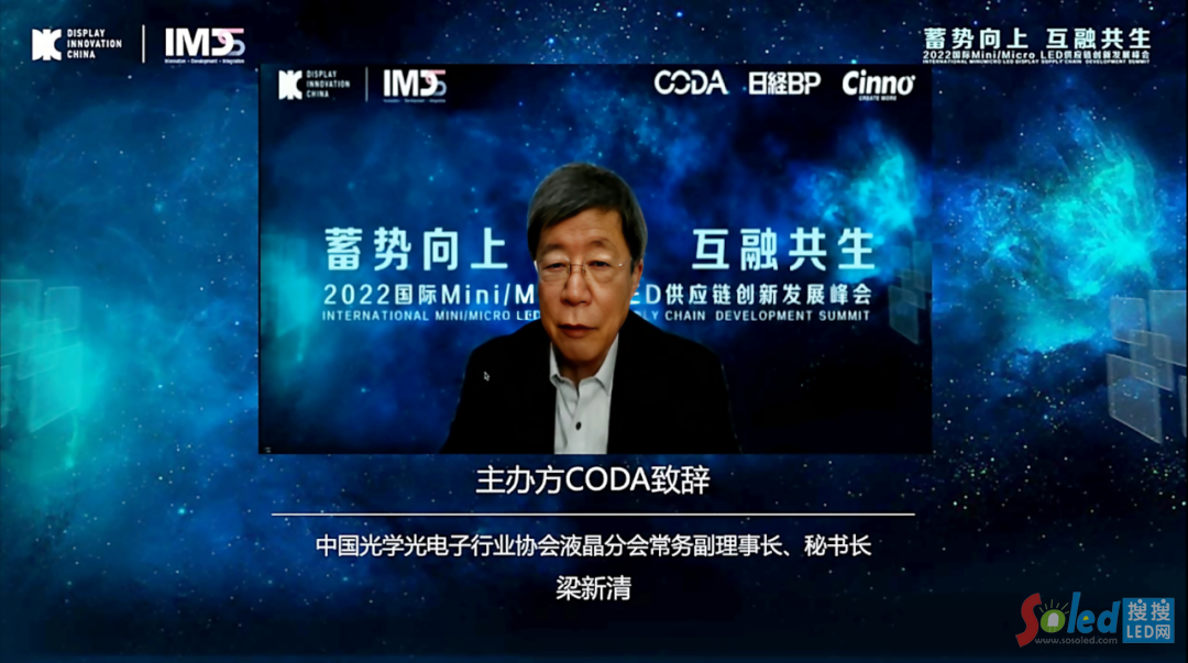 大會開始,首先由主辦方中國光學光電子行業(yè)協(xié)會液晶分會常務(wù)副理事長、秘書長梁新清發(fā)表致辭。“Mini LED作為Micro LED的前哨站,在2021年迎來規(guī);逃玫脑辏⒃2022年應(yīng)用終端迅速發(fā)展,成為LED及顯示行業(yè)的下一個增長點。而Micro LED作為備受矚目的下一代顯示技術(shù),應(yīng)用前景與發(fā)展空間也不容小覷。”