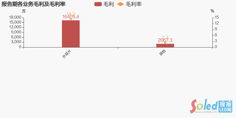 從業(yè)務(wù)結(jié)構(gòu)來看,“外延片”是企業(yè)營業(yè)收入的主要來源。具體而言,“外延片”營業(yè)收入為11.48億元,營收占比為56.6%,毛利率為14.3%。