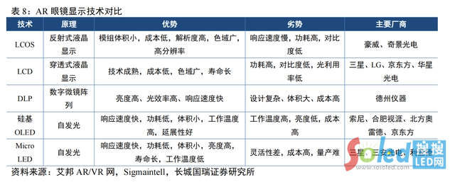 所謂微顯示器,通常指對角線尺寸小于1英寸的顯示器,與常規(guī)的顯示器一樣,其生成的圖像作為光學系統(tǒng)圖像的來源。長城國瑞證券分析師馬晨認為,Micro LED為AR/VR的終極顯示方案。