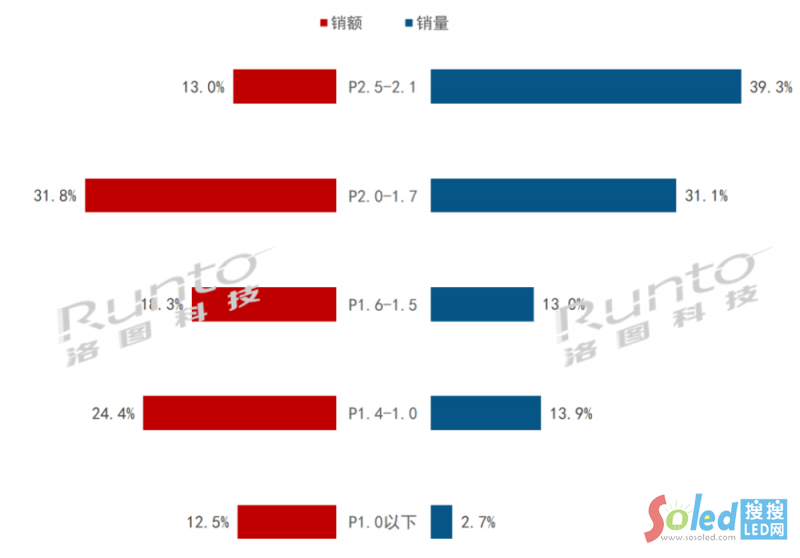 2022年中國大陸小間距LED顯示屏市場間距段結(jié)構(gòu)