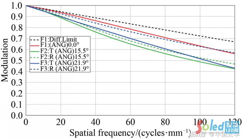 圖4: μLED微投影鏡頭的MTF曲線圖