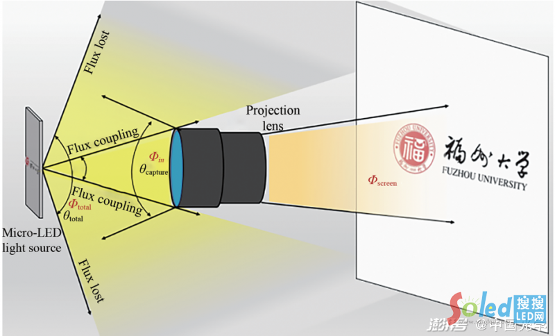 圖7: μLED微投影系統(tǒng)中的光能利用關(guān)系