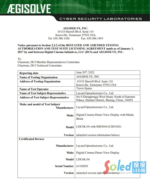 早在2022年10月,利亞德?lián)碛型耆灾髦R產權的LED電影屏便獲得DCI認證。此外,2019年11月,利亞德與LG電子聯(lián)合開發(fā)的LG LED Cinema (p3.3mm, 4K)顯示屏通過DCI認證。
