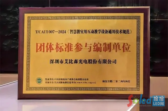 艾比森全程深度參與《智慧教室用互動教學(xué)設(shè)備通用技術(shù)規(guī)范》團體標(biāo)準(zhǔn)的編制,以多年的經(jīng)驗積累增強標(biāo)準(zhǔn)的適用性和有效性,不僅彰顯了產(chǎn)品與技術(shù)的持續(xù)創(chuàng)新能力,也體現(xiàn)了行業(yè)領(lǐng)軍企業(yè)的擔(dān)當(dāng)。在未來,艾比森將進一步凝聚各方力量,總結(jié)優(yōu)秀實踐經(jīng)驗,推動行業(yè)創(chuàng)新發(fā)展。