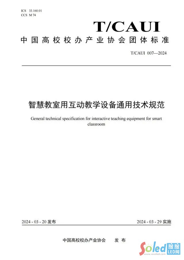 據(jù)艾比森大屏公眾號消息,近日,由中國高校校辦產(chǎn)業(yè)協(xié)會牽頭,艾比森、華為等共同起草的《智慧教室用互動教學(xué)設(shè)備通用技術(shù)規(guī)范》(T/CAUI 007-2024)團體標(biāo)準(zhǔn)正式對外發(fā)布并實施。該標(biāo)準(zhǔn)作為高等院校“智慧校園”建設(shè)系列團體標(biāo)準(zhǔn)的重要組成部分,旨在規(guī)范我國互動教學(xué)設(shè)備產(chǎn)品質(zhì)量、保障消費者權(quán)益、促進國內(nèi)市場規(guī)模化發(fā)展。