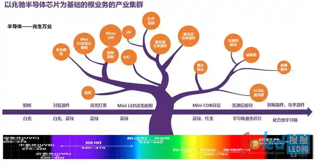 而LED芯片主要襯底為藍(lán)寶石,該技術(shù)與GaAs、SiC、GaN等化合物半導(dǎo)體工藝技術(shù)同源。遵循襯底技術(shù)的同源性和全光譜技術(shù)的可覆蓋性,兆馳半導(dǎo)體近年來(lái)持續(xù)向化合物半導(dǎo)體企業(yè)轉(zhuǎn)型升級(jí),將芯片的應(yīng)用范圍向光通信、射頻器件、功率器件等領(lǐng)域延伸,打開(kāi)化合物半導(dǎo)體無(wú)限的想象空間。