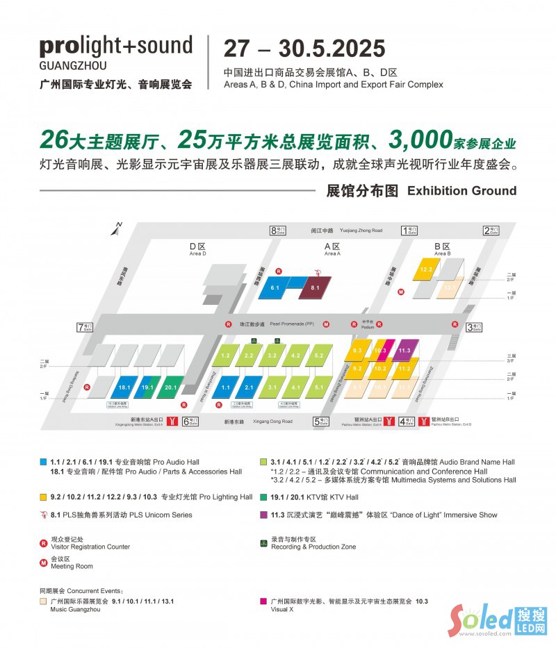 2025廣州展首次橫跨展館的ABD三大展區(qū),展會不但實現(xiàn)了規(guī)模上的再次突破,更致力在參展效益與展會質(zhì)量上不斷提升。其中A區(qū)是通訊及會議系統(tǒng)、多媒體系統(tǒng)方案以及專業(yè)音響設(shè)備的前沿陣地。B區(qū)則匯聚了眾多專業(yè)燈光、舞臺機(jī)械、沉浸式互動、文旅照明以及數(shù)字光影等相關(guān)產(chǎn)品,首次啟用的D區(qū)將重點打造為KTV相關(guān)設(shè)備、娛樂場景解決方案的集中展示區(qū)。同時,今年全新推出的專業(yè)音響配件館也將在D區(qū)的18.1號館隆重登場。