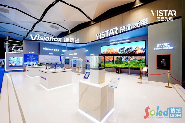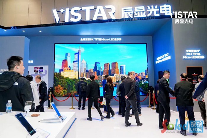 其中,辰顯光電展出的全球首款8K TFT基 Micro-LED顯示屏,憑借270英寸超大尺寸與極致畫質(zhì),成為全場焦點(diǎn),代表了當(dāng)前全球顯示技術(shù)的最高水平。其像素間距僅0.7毫米,8K 超高清分辨率可呈現(xiàn)超3300萬個(gè)像素點(diǎn)的細(xì)膩細(xì)節(jié),畫面細(xì)膩通透。產(chǎn)品采用先進(jìn)的AM驅(qū)動(dòng)技術(shù),實(shí)現(xiàn)每個(gè)像素獨(dú)立控制,畫面更加均勻穩(wěn)定,徹底解決傳統(tǒng)LED大屏亮暗不一的問題。得益于 Micro-LED 自發(fā)光特性,屏幕可呈現(xiàn)純粹的黑色、極高的對比度和自然鮮艷的色彩,帶來如臨其境的觀影體驗(yàn)?蓮V泛應(yīng)用于專業(yè)影院、高端私人影院、指揮調(diào)度中心、商業(yè)展示等高端場景。