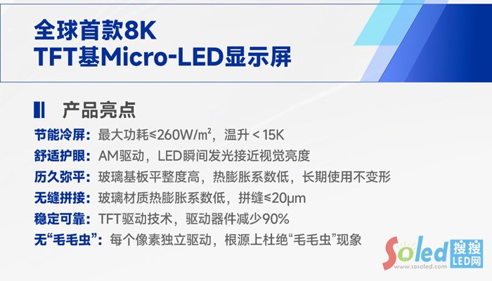全球首款13.55英寸 P0.7 TFT基Micro-LED拼接模組:模塊化大尺寸設(shè)計(jì),平整度高、拼縫小,為超高清商顯提供可規(guī)模化的工程化方案。