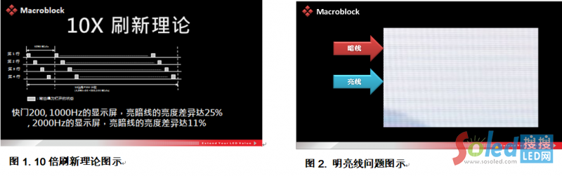 控制器領(lǐng)導(dǎo)品牌諾瓦科技于九月份舉辦一年一度的Nova World 2014,分別于北京、上海、深圳熱烈展開(kāi),聚積科技身為其戰(zhàn)略合作伙伴應(yīng)邀參與并擔(dān)任講師,針對(duì)小點(diǎn)間距顯示屏的核心關(guān)鍵因素提出解決方案。 第一站北京,聚積產(chǎn)品總監(jiān)黃炳凱提到,以租賃市場(chǎng)為例,主力為四大應(yīng)用,包括: 演場(chǎng)會(huì)、演播室、展覽與會(huì)議等。使用顯示屏作為背景已為顯學(xué),但仍可發(fā)現(xiàn)存在傳統(tǒng)常見(jiàn)刷新不足、灰度損失等,甚至是明亮線問(wèn)題。針對(duì)明亮線問(wèn)題,聚積科技提出10倍(10X)刷新理論(圖1.)。