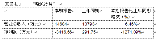 表4:東晶電子股份有限公司2014上半年年報(bào)簡(jiǎn)要(數(shù)據(jù)來源:東晶電子2014年半年度報(bào)告摘要)