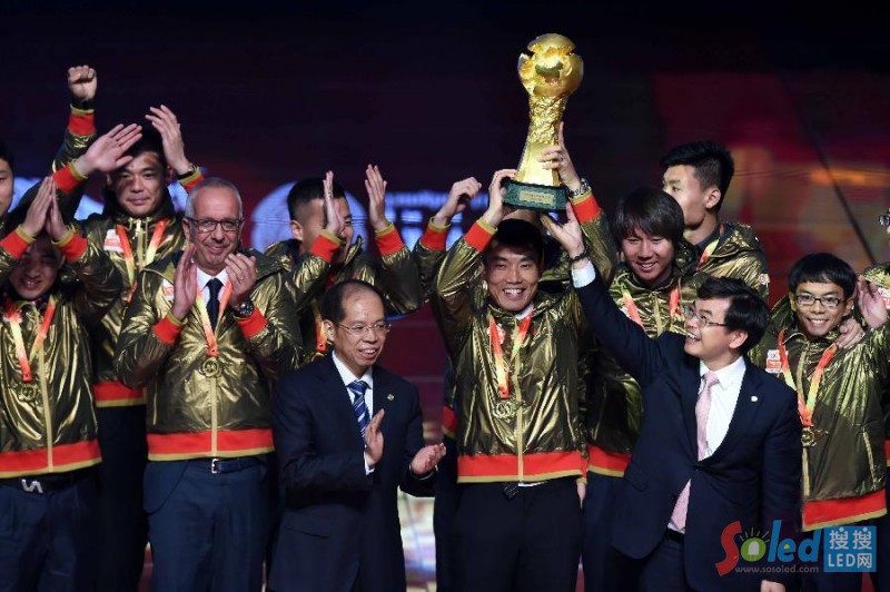 圖:雷曼光電榮獲“2014中超足球聯(lián)賽最佳合作伙伴獎”