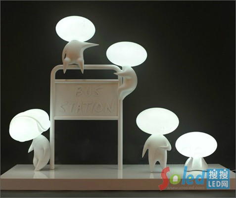 這個萌萌的小燈是廣美工業(yè)設計學院的周曉娜設計而成的,這個雖然沒什么復雜工藝,但單憑這一撮腦瓜發(fā)亮的小白人,就足夠抓住人的眼球。