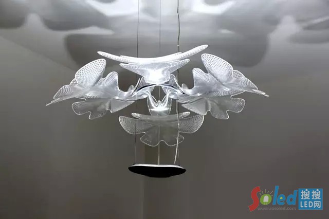 ross lovegrove為artemide為設(shè)計的chlorophilia燈款式特別優(yōu)美,用細繩懸掛,把燈打開時,精致的色調(diào)和空間形成鮮明對比。燈光一如他行云流水般簽名,從中間部位間接散發(fā)出燈光,經(jīng)過過濾而后通過第三塊透明葉狀表面折射回來。內(nèi)部含有作為散熱器的LED芯片和用鑄造PMMA制作而成的超效等位基因元素,作為光學鏡片,讓紋理呈波紋狀和階梯型斷面。整個燈分為三個部件,將光分層顯現(xiàn),部分重疊,增加陰影對比。這種天花板模式可以運用到其他項目中。