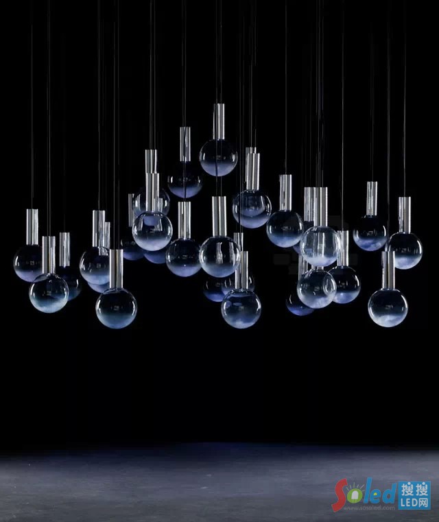 每個燈泡中的微型的投影機展現(xiàn)出了不同環(huán)境下千變?nèi)f化的天空景象,ommonplacestudio通過這28個吊燈組合完美地展現(xiàn)出兩種不同的定義與詮釋,創(chuàng)造出了一種云朵般的即視感。特制微型投影儀鑲嵌在燈泡之中,整個云層不斷變化著,從下面看去,就像是不同環(huán)境中天空的景象——從平靜到波瀾——向每個燈泡內(nèi)部的表面放射。