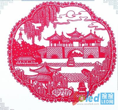 記者看到,LED剪紙燈首批選擇了十個剪紙圖案,其中既包括傳統(tǒng)的瘦西湖、二十四橋風(fēng)景,也涵蓋了揚州仕女等人物圖案。“完全跳出了傳統(tǒng)剪紙的手法。”王京透露,設(shè)計師們將剪紙與國畫的暈染技巧結(jié)合起來,形成了獨特的藝術(shù)效果,“這也是國內(nèi)首個采用暈染技巧來設(shè)計的剪紙產(chǎn)品,通過獨特的技藝讓剪紙作品更加多彩化。”